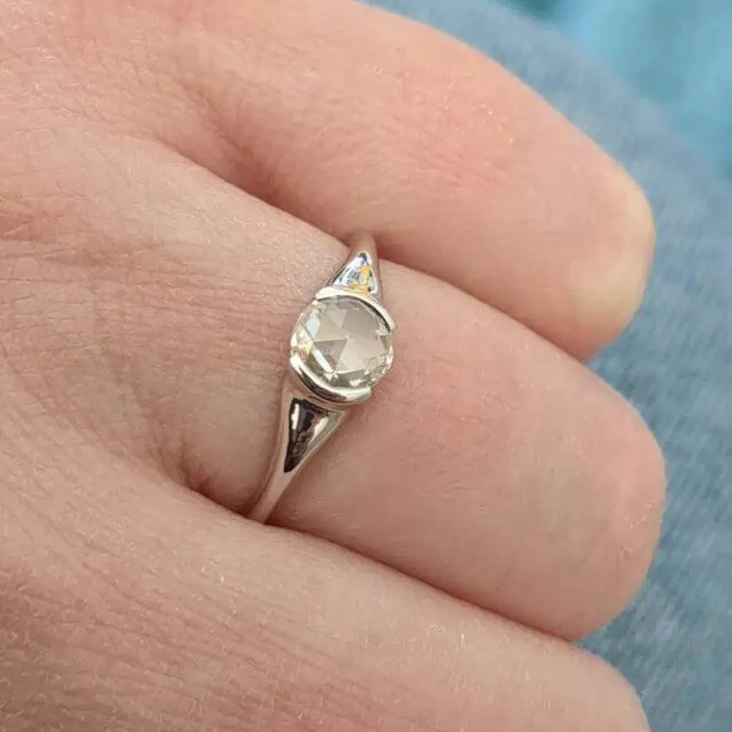Rose Cut Diamond Ring featuring a round rose cut diamond.