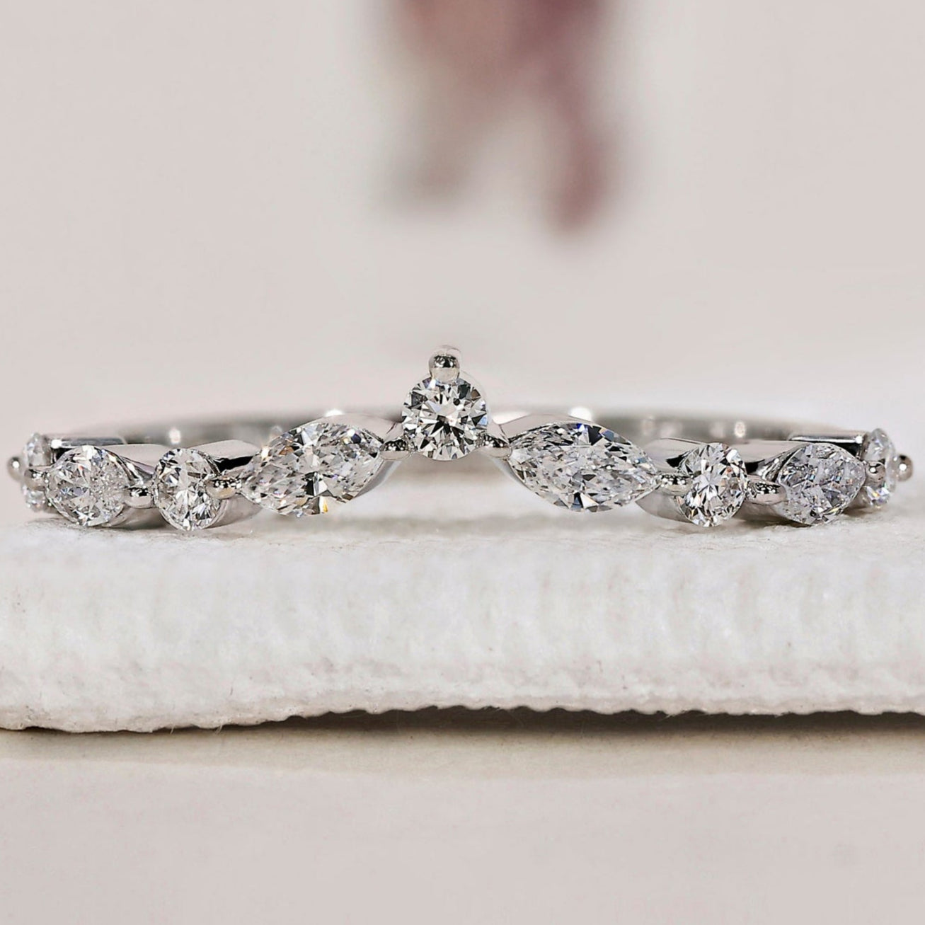 Curved Diamond Wedding Band with sparkling diamonds set in a sleek design.