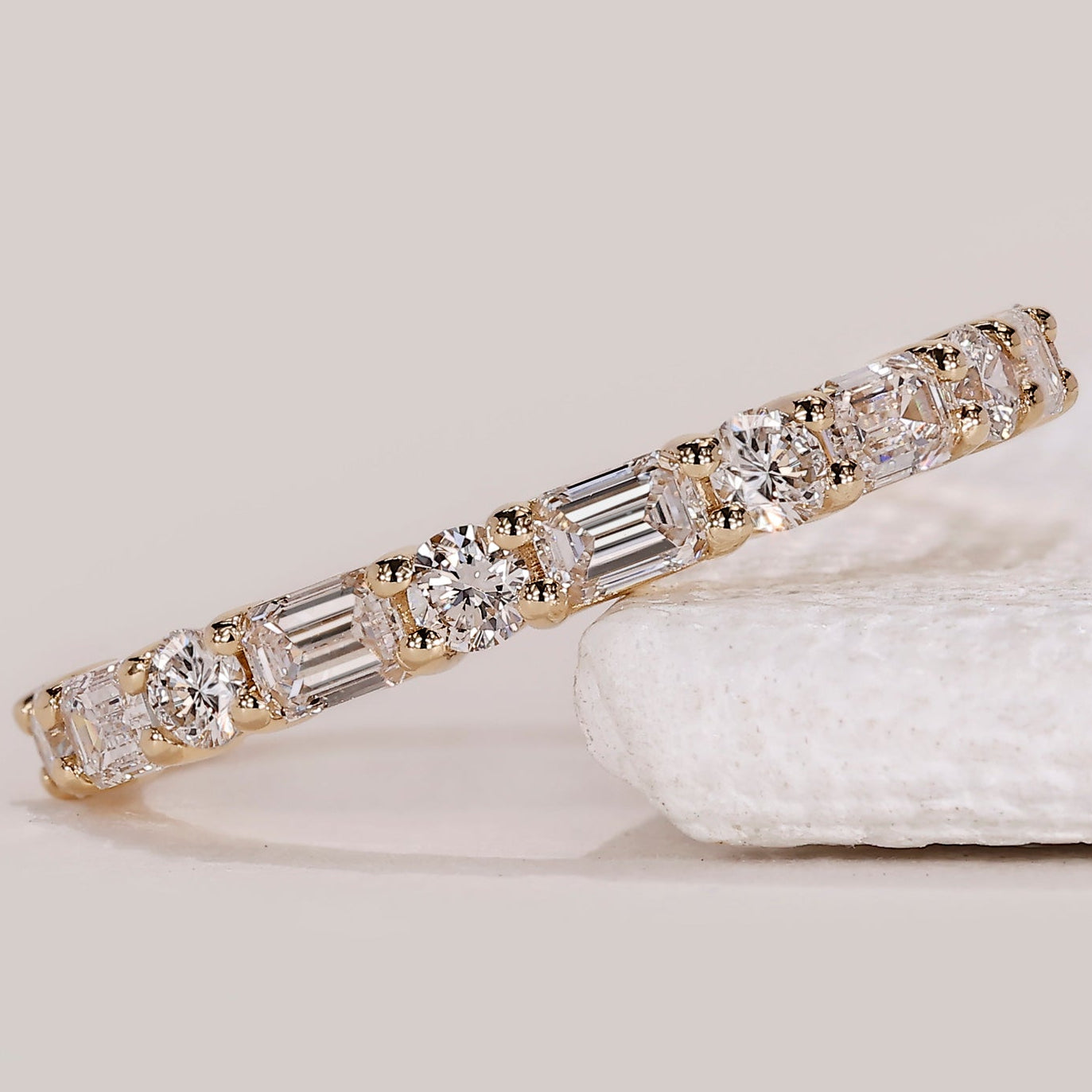 Half Eternity Emerald and Round Wedding Band