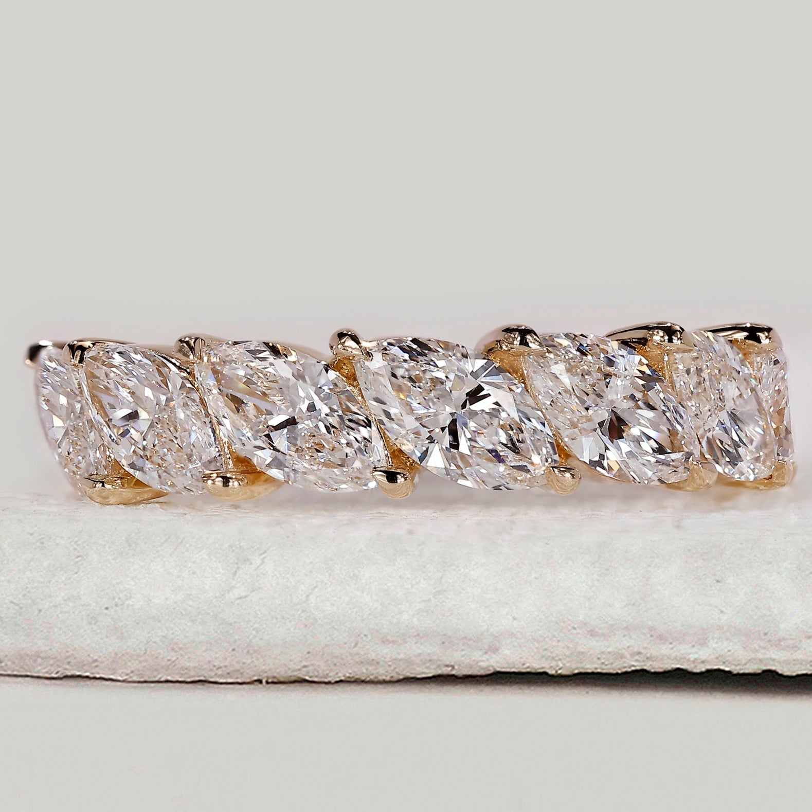 Half Eternity Marquise Wedding Band in Yellow Gold