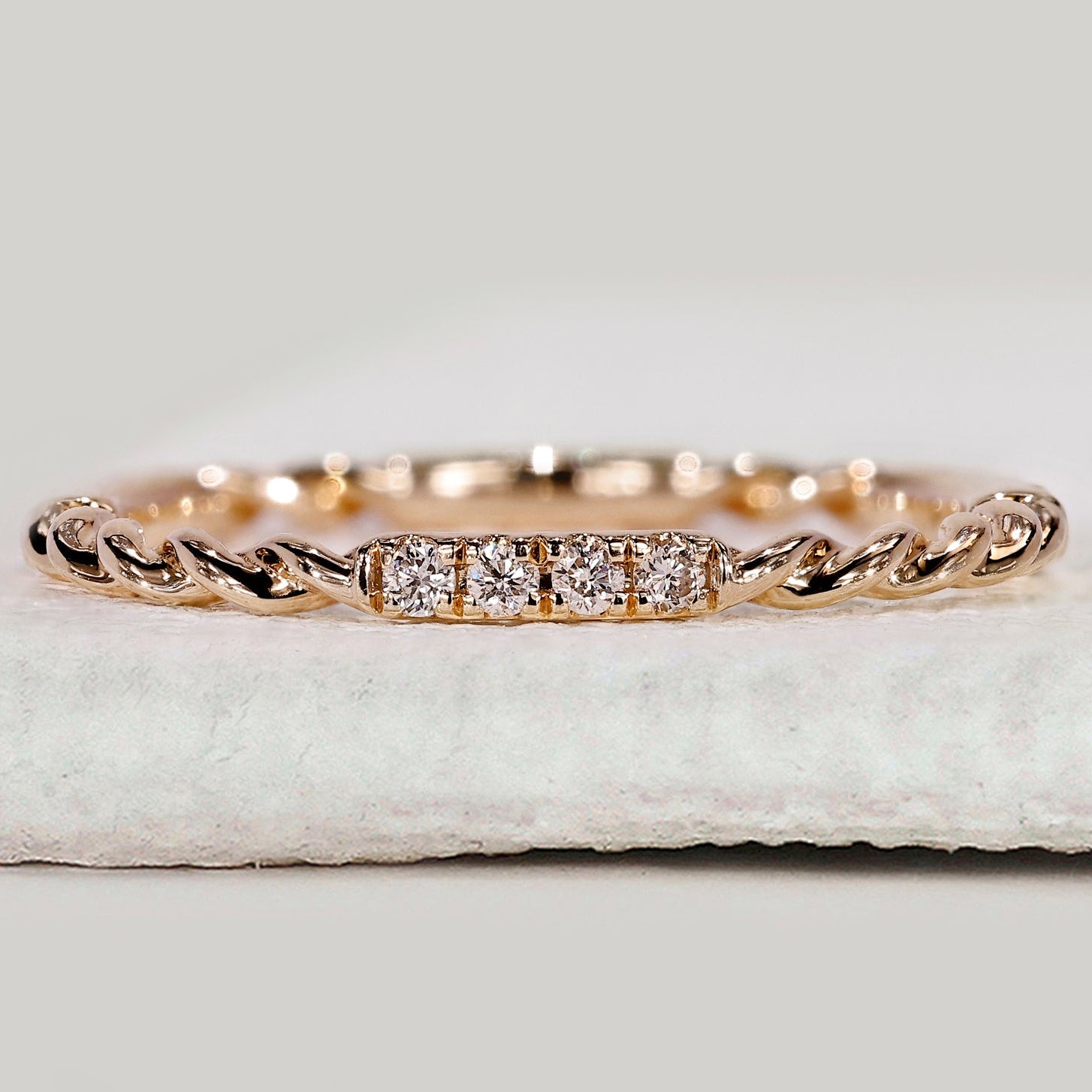 Round Cut Diamond Twisted Rope Wedding Band