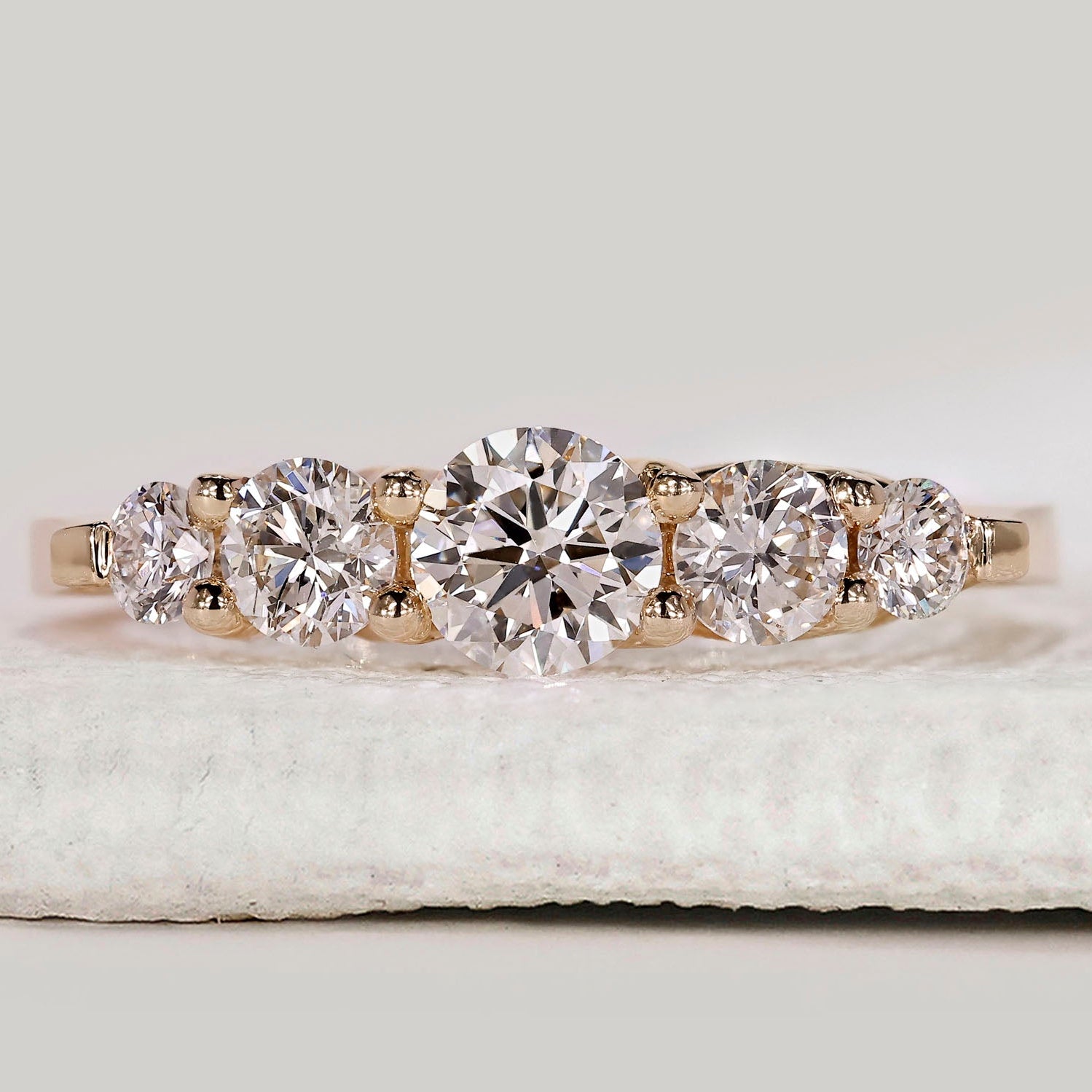 5 stone diamond band in yellow gold.