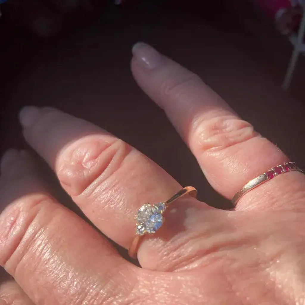3 stone engagement ring with round side stones.