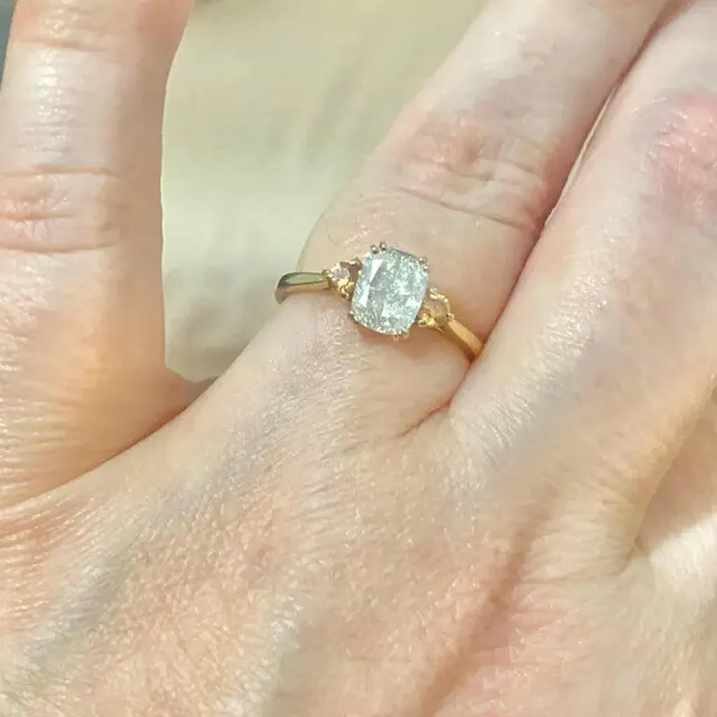 Cushion and Round Cut 3 Stone Engagement Ring