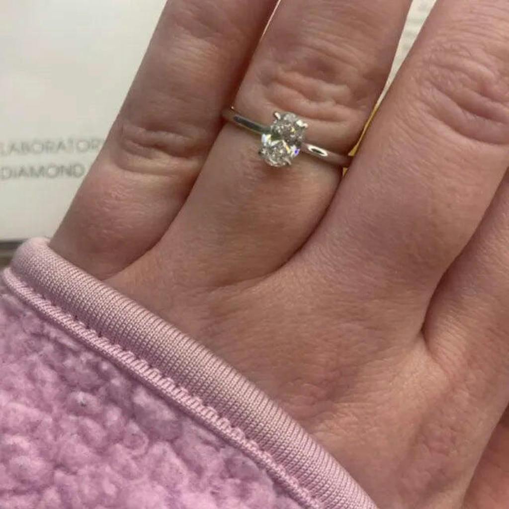 Oval Solitaire Engagement Ring with a stunning Lab Grown Diamond.