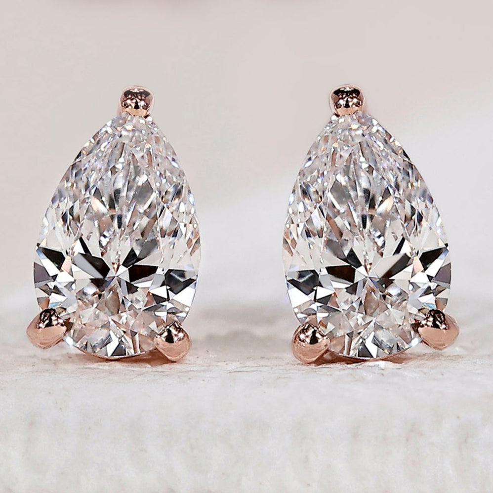 Pear Diamond Earrings - Rose Gold