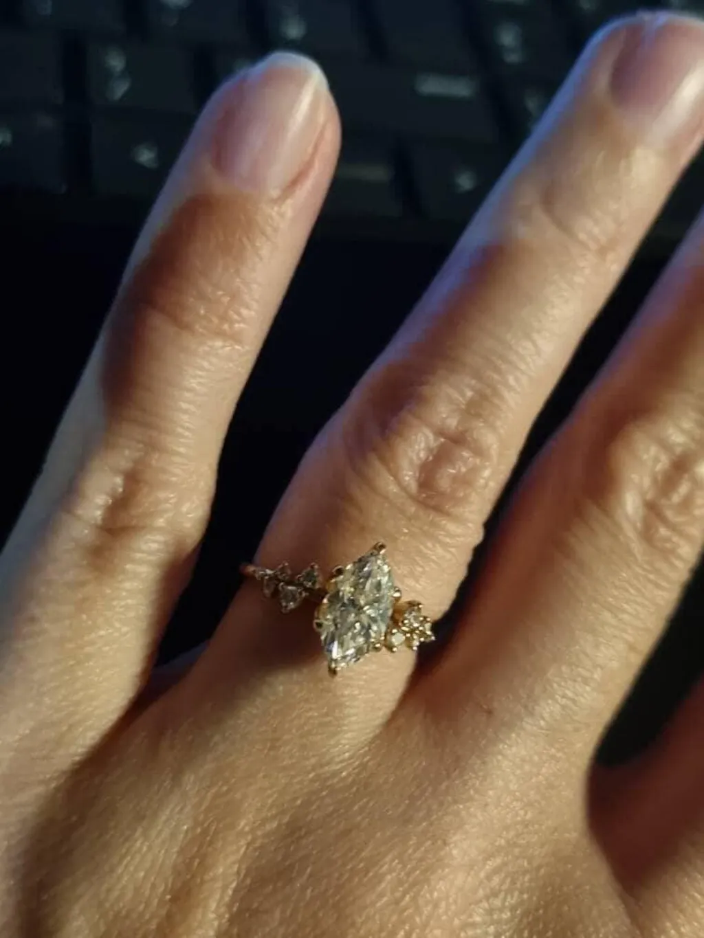 Yellow Gold Marquise Engagement Ring with Side Stone